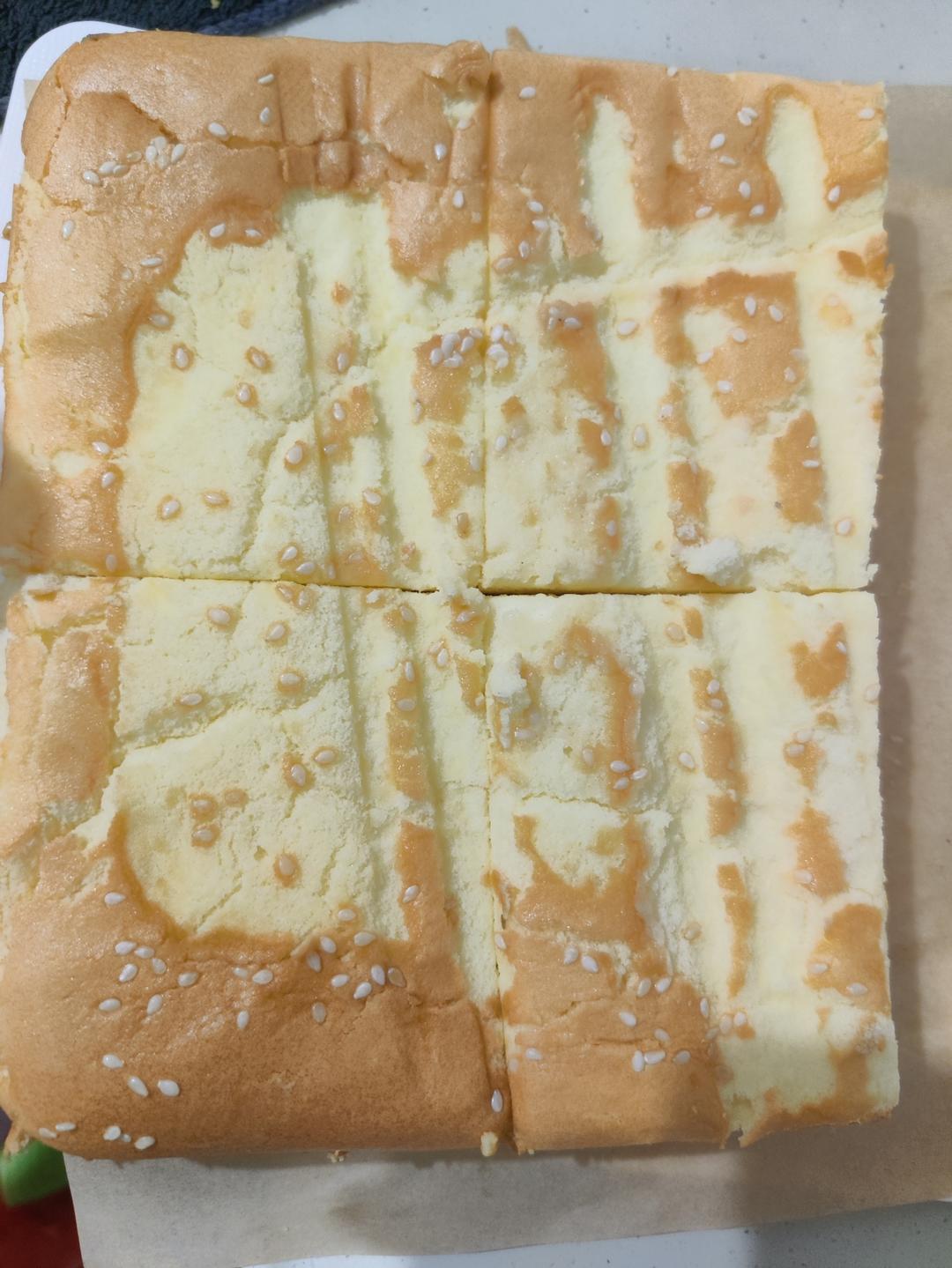 我用的普通面粉+淀粉做的,用的方盘,没有模具高,按照这个比例用140℃烤30 分钟,有炸裂...