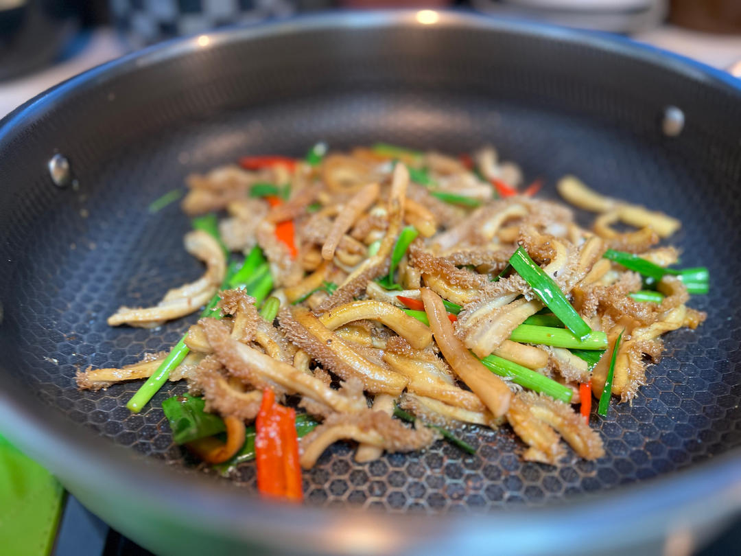 🫐酸萝卜炒牛肚、桂花汤圆、蓝莓,还炸了很多红薯片。