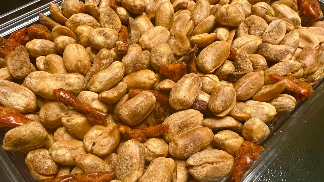 炸花生米的完美顶替!用的上好的冷榨花生油的山东大花生米,翻炒过程中,白胖的花生米慢慢变得金灿灿,并且香气四溢~加了些贵州...