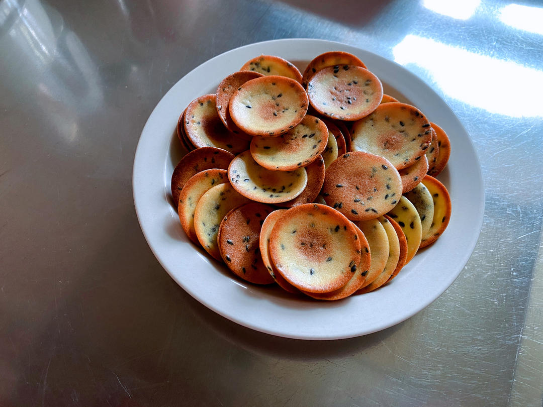 记录一下,用桃酥剩下的2个蛋白做的,越薄越脆(我吃有点甜,家人吃就刚好)