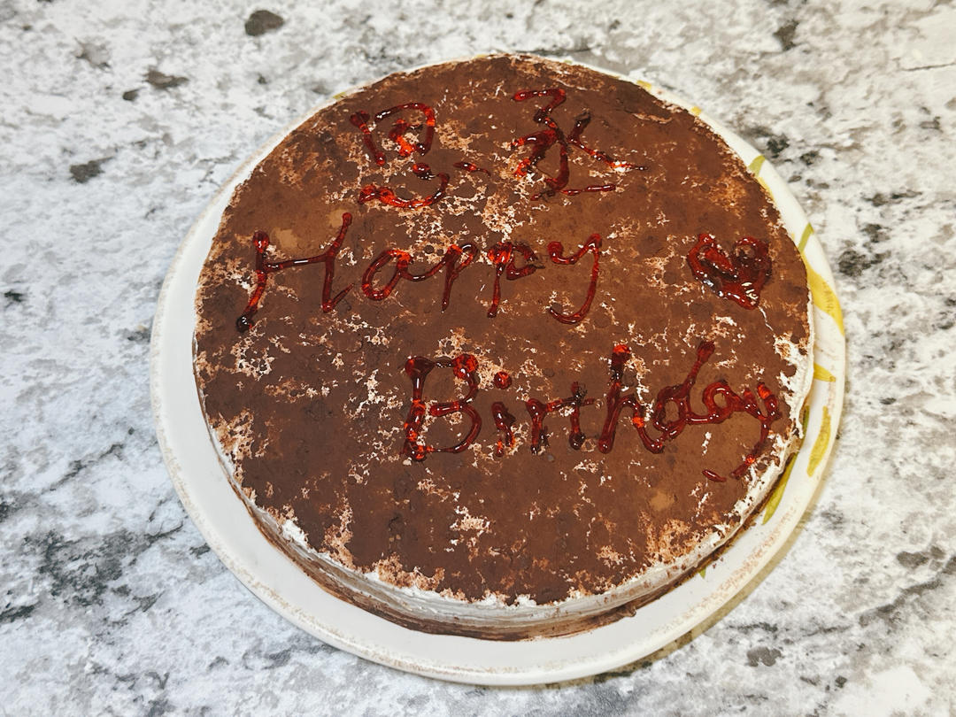 今年生日蛋糕做了某人最喜欢的提拉米苏口味