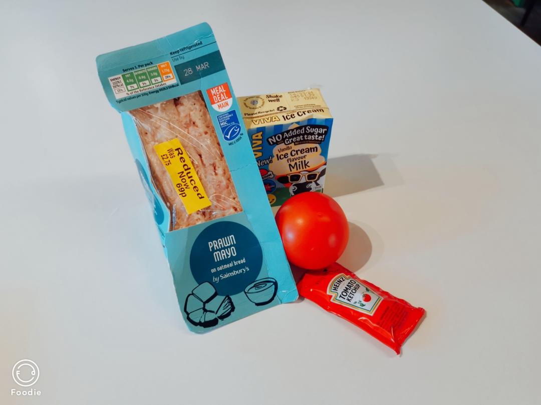 中午恰捡来的三明治和香草冰激凌奶
