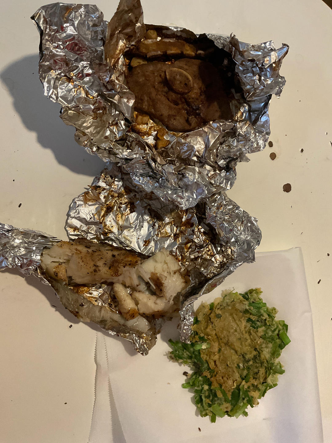 空气炸锅鳕鱼,再来一个烤羊排,韩国韭菜饼,用bulk barn买的韩国烧烤料调味,裹上小米...