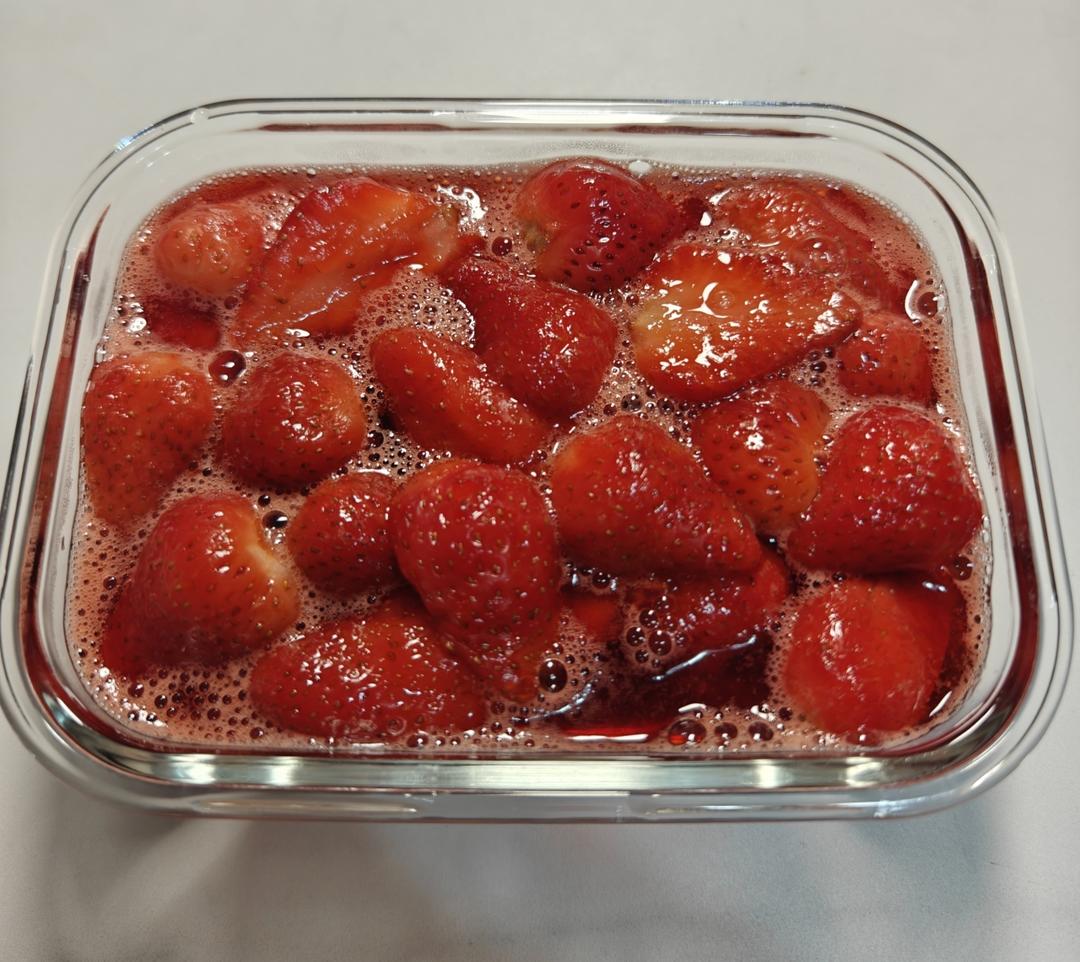 冰点草莓🍓~估计我一开始糖放太少了,加上草莓太大,放了好久也没出多少水,后面小火熬起来,...