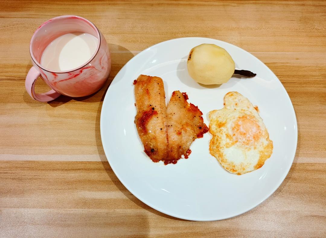 煎鱼排,煎鸡蛋🍳库尔勒香梨🍐🥛