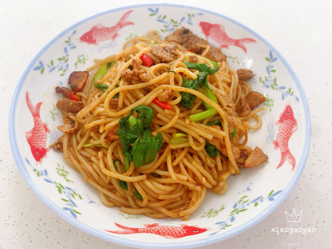 黄豆芽五花肉焖面,好吃!