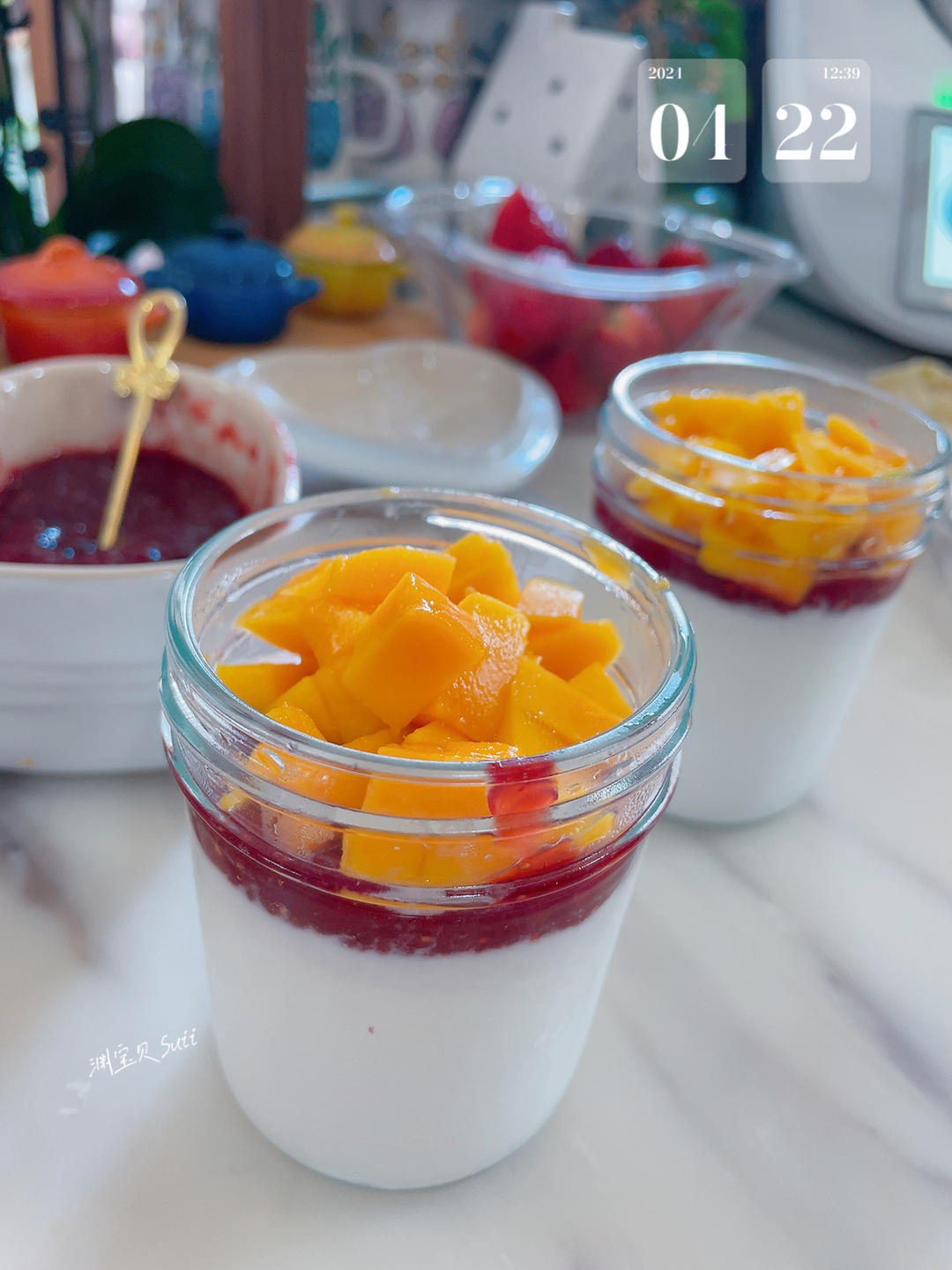 厚椰乳、茶冻、芒果、西米、自己揉的芋圆。组成了山寨版的杨枝甘露,如果加点西柚肉应该更美味😋#下午茶•2024年4月22日...
