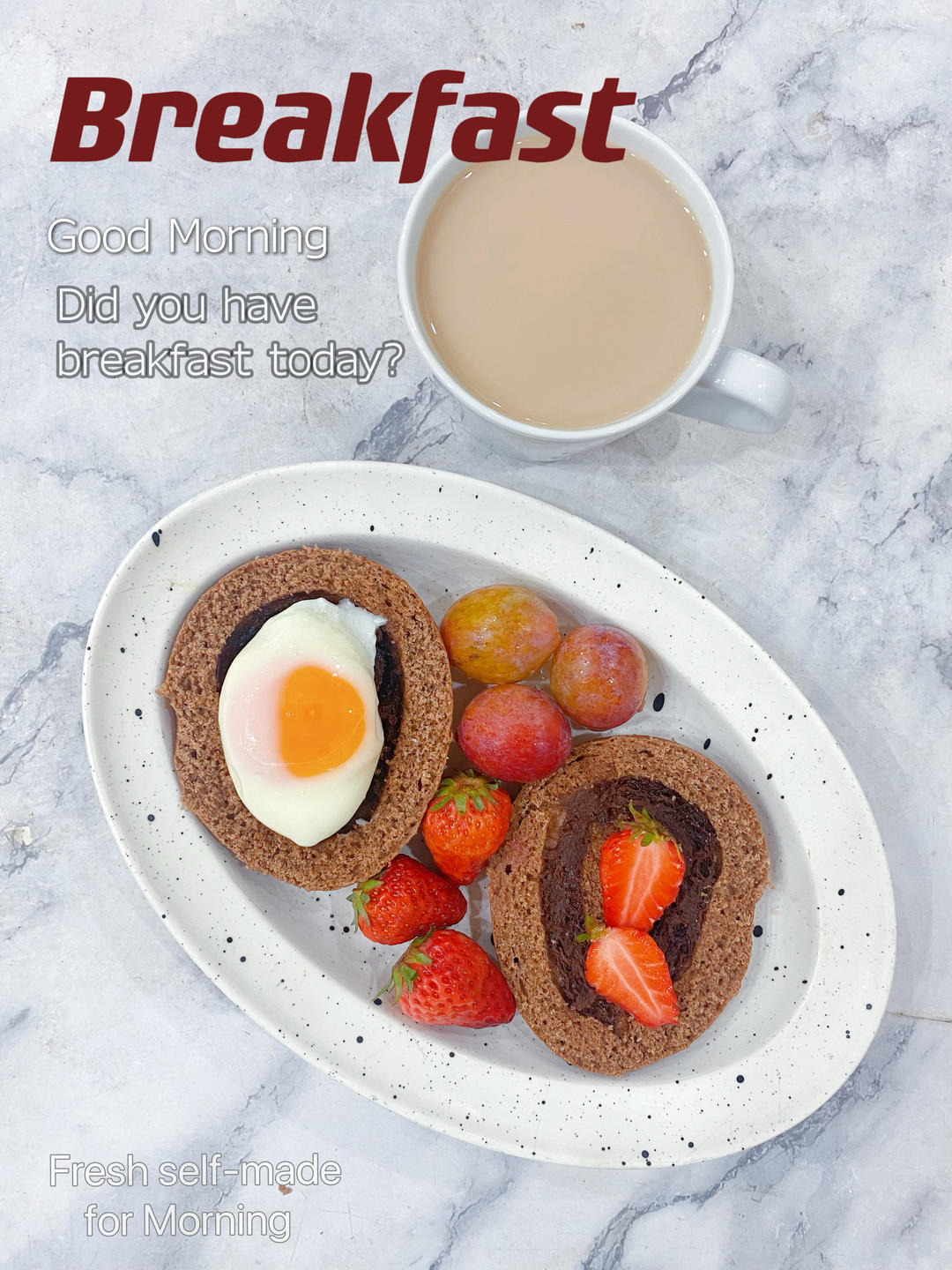 早:☕奶咖🍓🍒🍳+🥯黑巧全麦贝果
