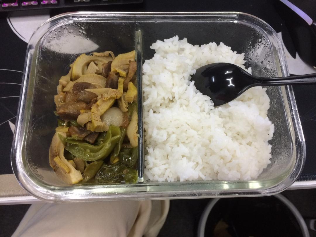 红烧火鸡丸子,微波炉加热时间多了反而有点炸丸子🧆口感多余的红烧汁做了一个红烧莴笋,半袋酱...