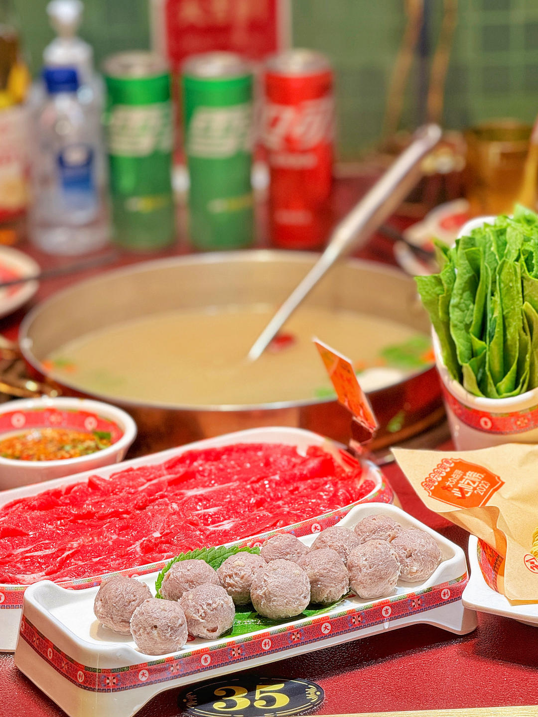 吊龙伴~肥瘦相间中还有点筋道,汤底中汆汤几下就好,爽滑不失口感。
