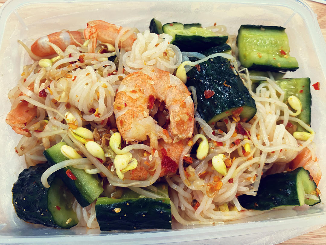 我的午餐:魔芋结+青瓜+豆芽+虾仁