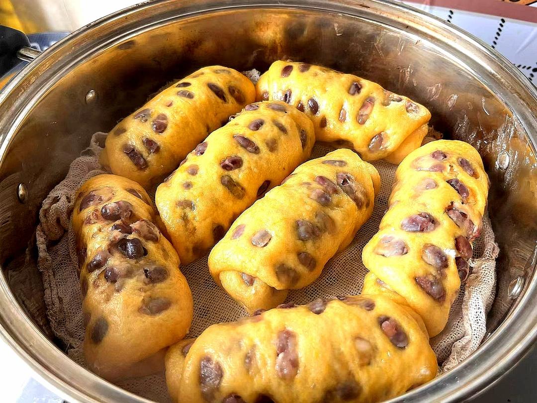 假期美食:红豆南瓜馒头