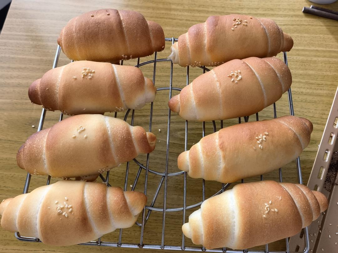 跟方学做,和面改用玉米油,糖减了6克,用风炉200度,13分钟,虽然样子很丑,但口感味道都很好,外皮底部脆脆的。感谢老师...