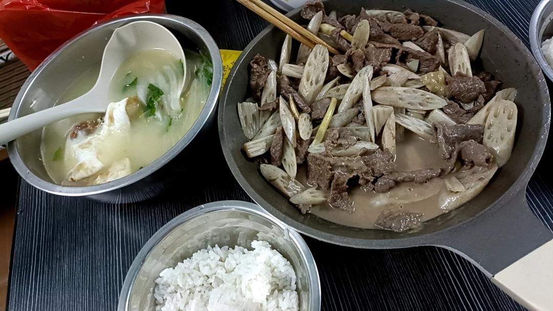加了鸡蛋,贼香🉑。腌牛肉的时候另外加了点大蒜粉、洋葱粉。蔬菜用的茼蒿、洋葱、胡萝卜丝。生抽和蚝油调味,出锅亲前加了一点点...