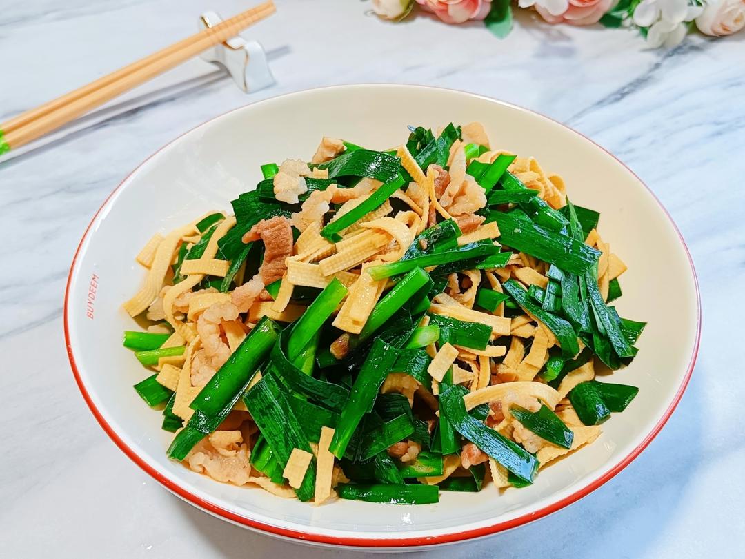 韭菜五花肉炒豆腐皮