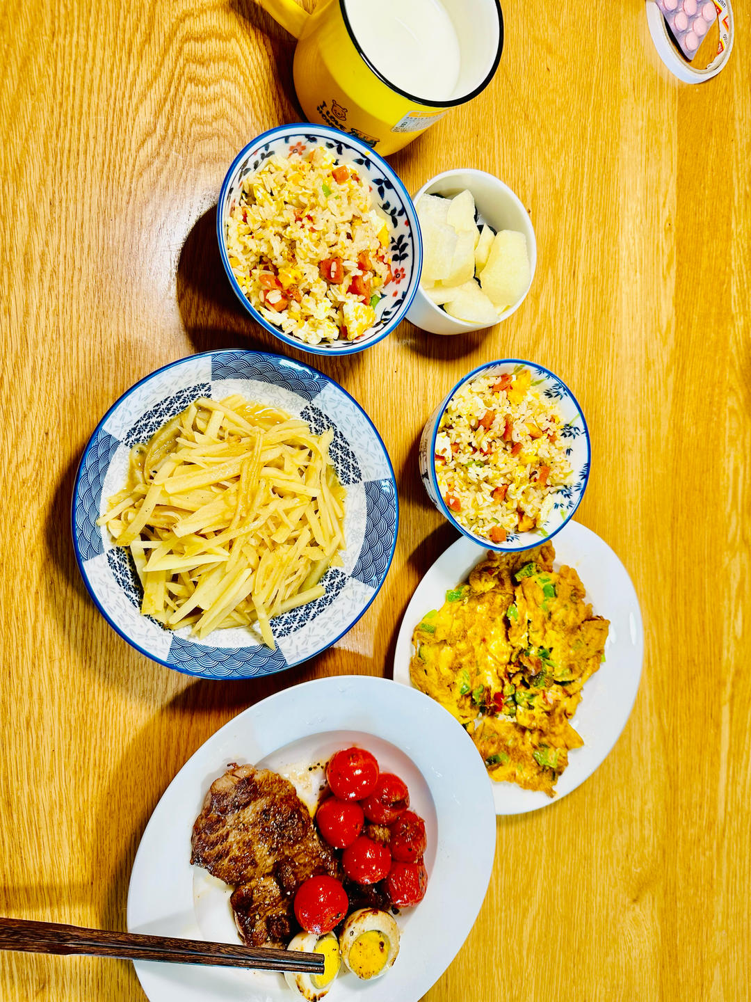 队友临时发来电报,说回来吃饭,地还没擦完呢,冰箱边角料,火速来几个快手菜。中午圈存忘了带...