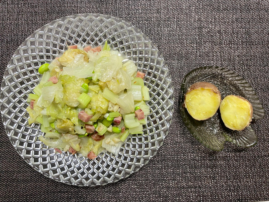 蔬菜小炒:西芹、生菜、青豆、午餐肉