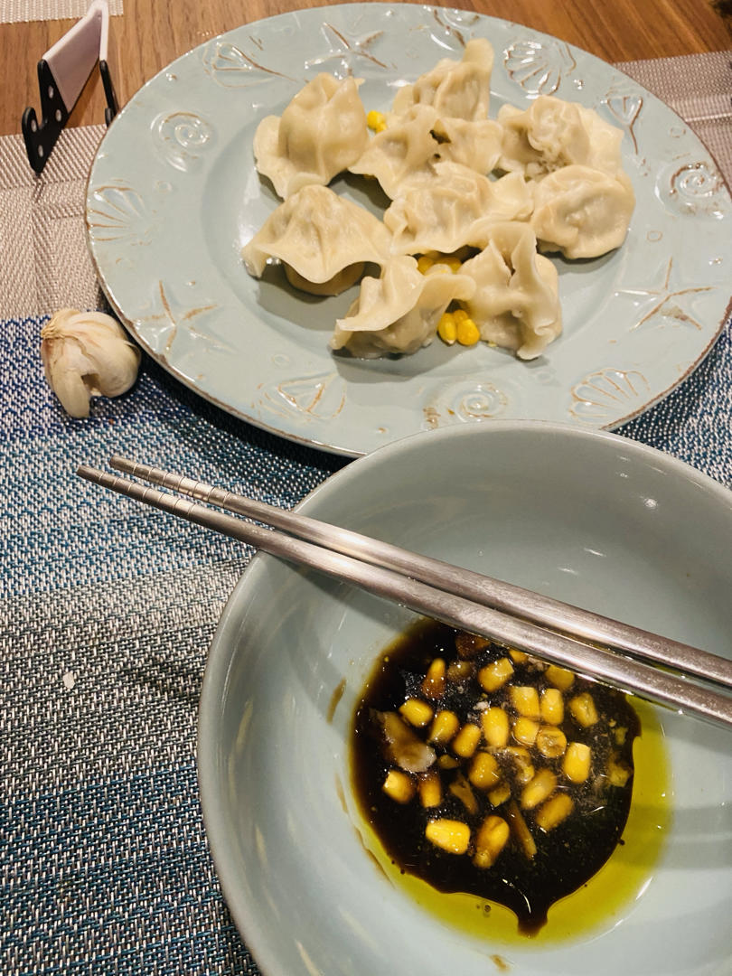 晚餐蒸饺。大概蒸15分钟。花朵部分皮还是有点干硬,影响口感,下次还是用水煮吧...