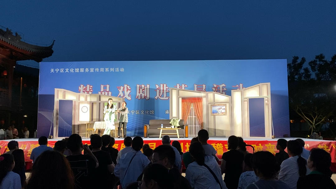 闲步萃园,偶遇滑稽剧演出,台前观众被引得笑声连连O(∩_∩)O~