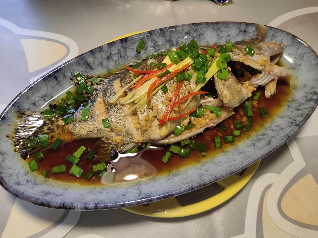 红烧武昌鱼、丝瓜鸡蛋粉丝、苦瓜、凉拌豆腐丝
