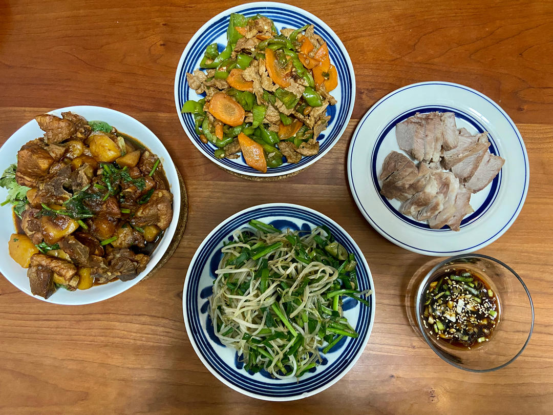 青椒肉丝 素炒茼蒿 拌土豆丝 棒渣粥