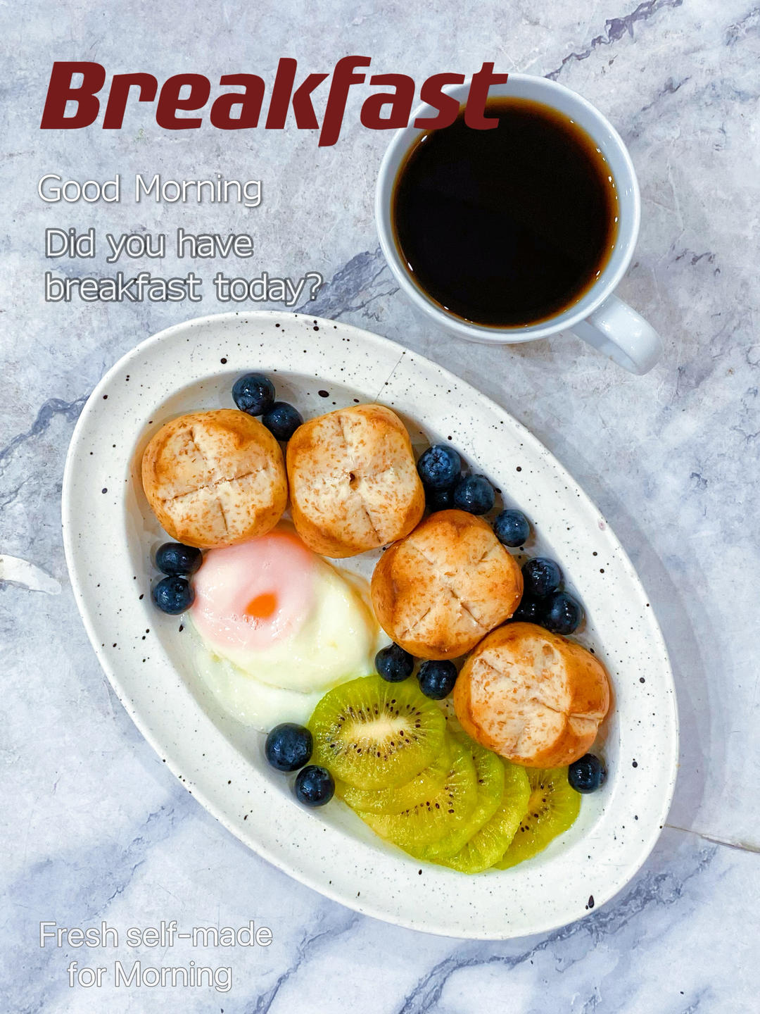 早:☕柠檬美式🥝🫐🍳🥐碱水球小面包⭐