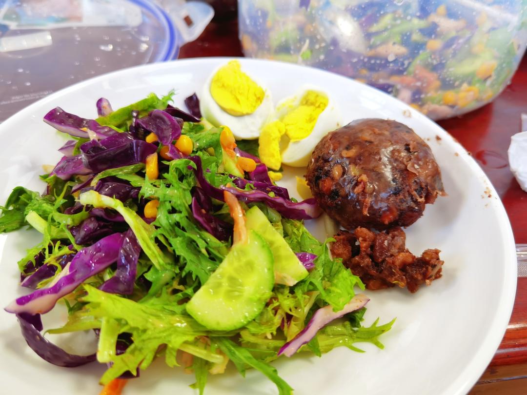 牛奶杂粮粽子🥛炖蛋🍮红枣核桃南瓜馒头🎃烤肠🥓西兰花🥦樱桃🍒