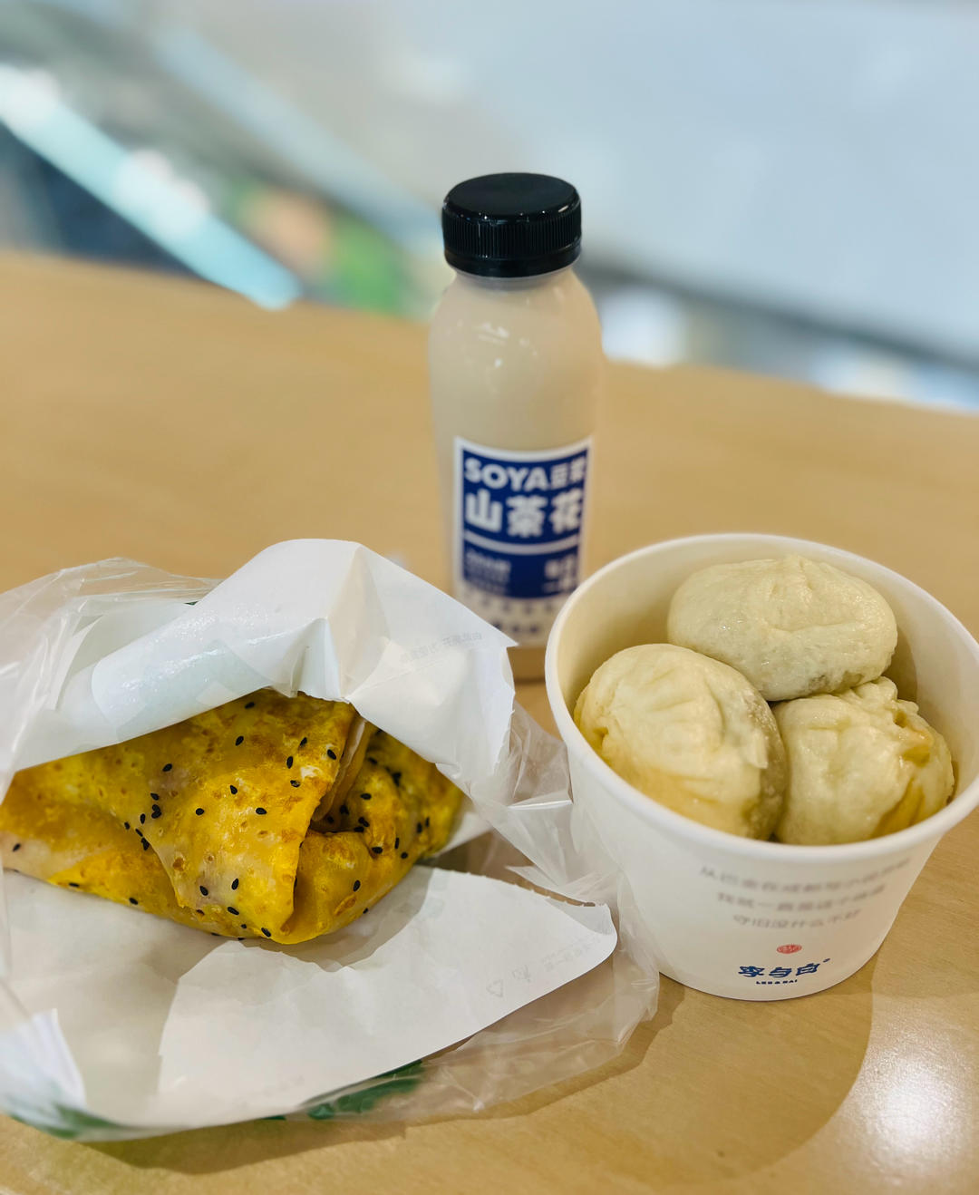 早上在成都金融中心IFS吃的煎饼道,和李与白包子,套餐里的山茶花豆浆很好喝,还有茉酸奶的...