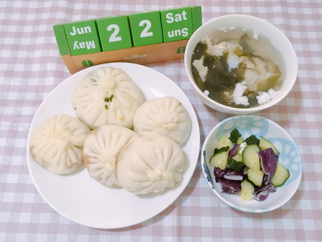 G7S2.W17Day6.猪肉三鲜包搭黄瓜🥒紫甘蓝配紫菜蛋花汤