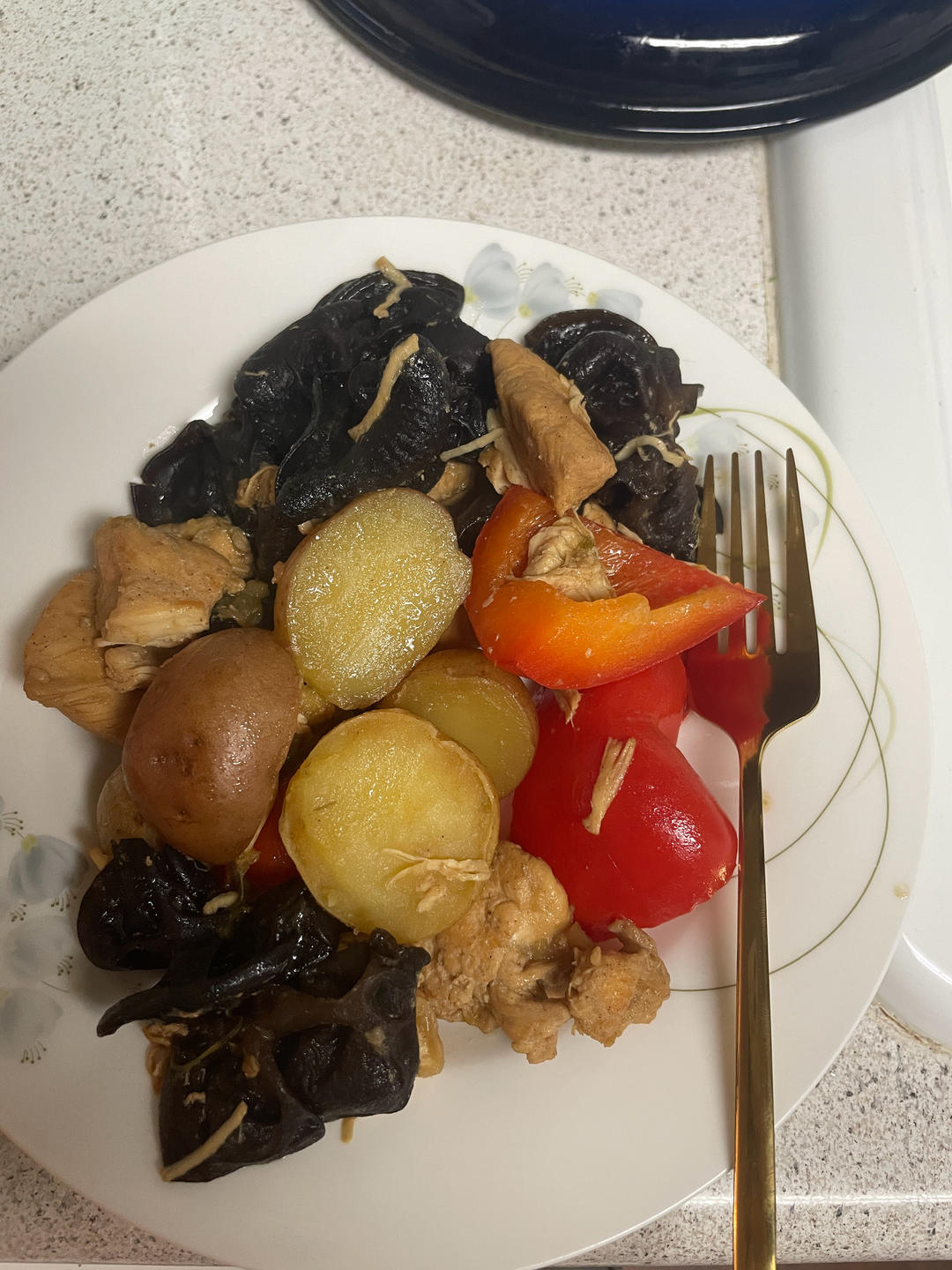 家里只有红色彩椒啦,味道真不错!