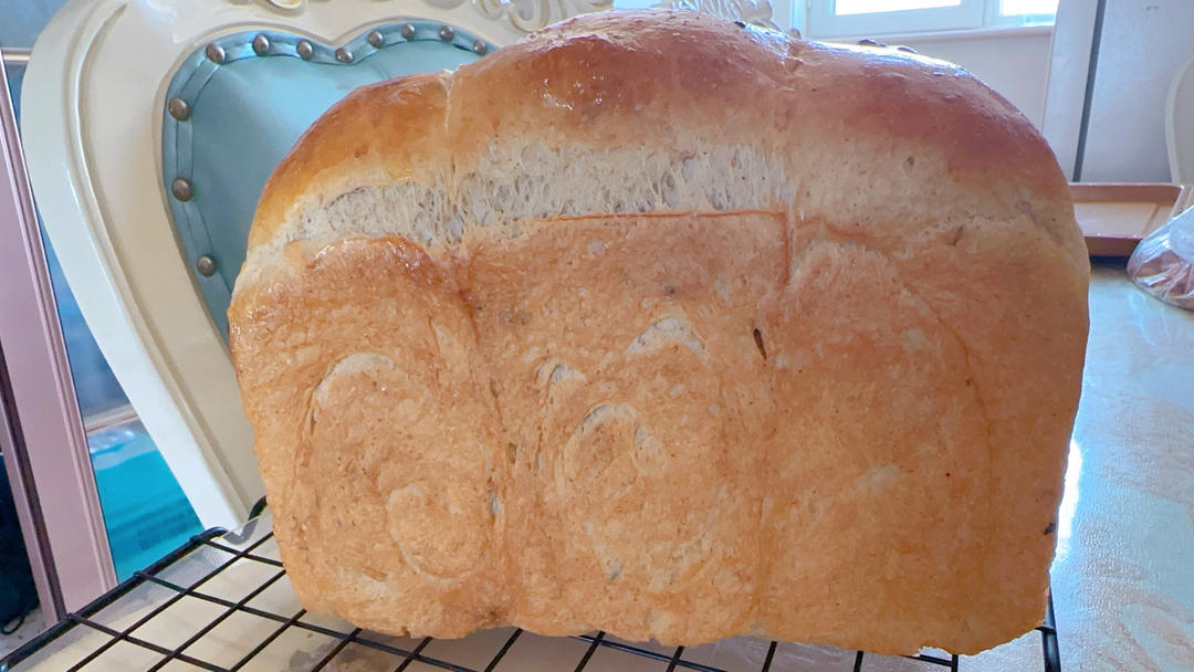 高粉150克,多谷面包粉100克,奶粉10克,一个鸡蛋,代糖15克,鲜酵母9克,牛奶17...