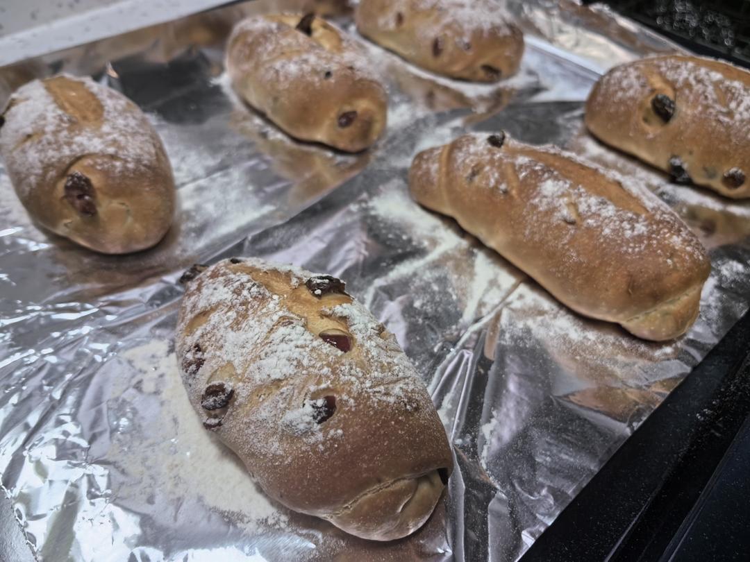 没减糖,果干用的是每日坚果里的葡萄干+蔓越莓干+黑加仑干,总共30g,但还是觉得有点甜了。