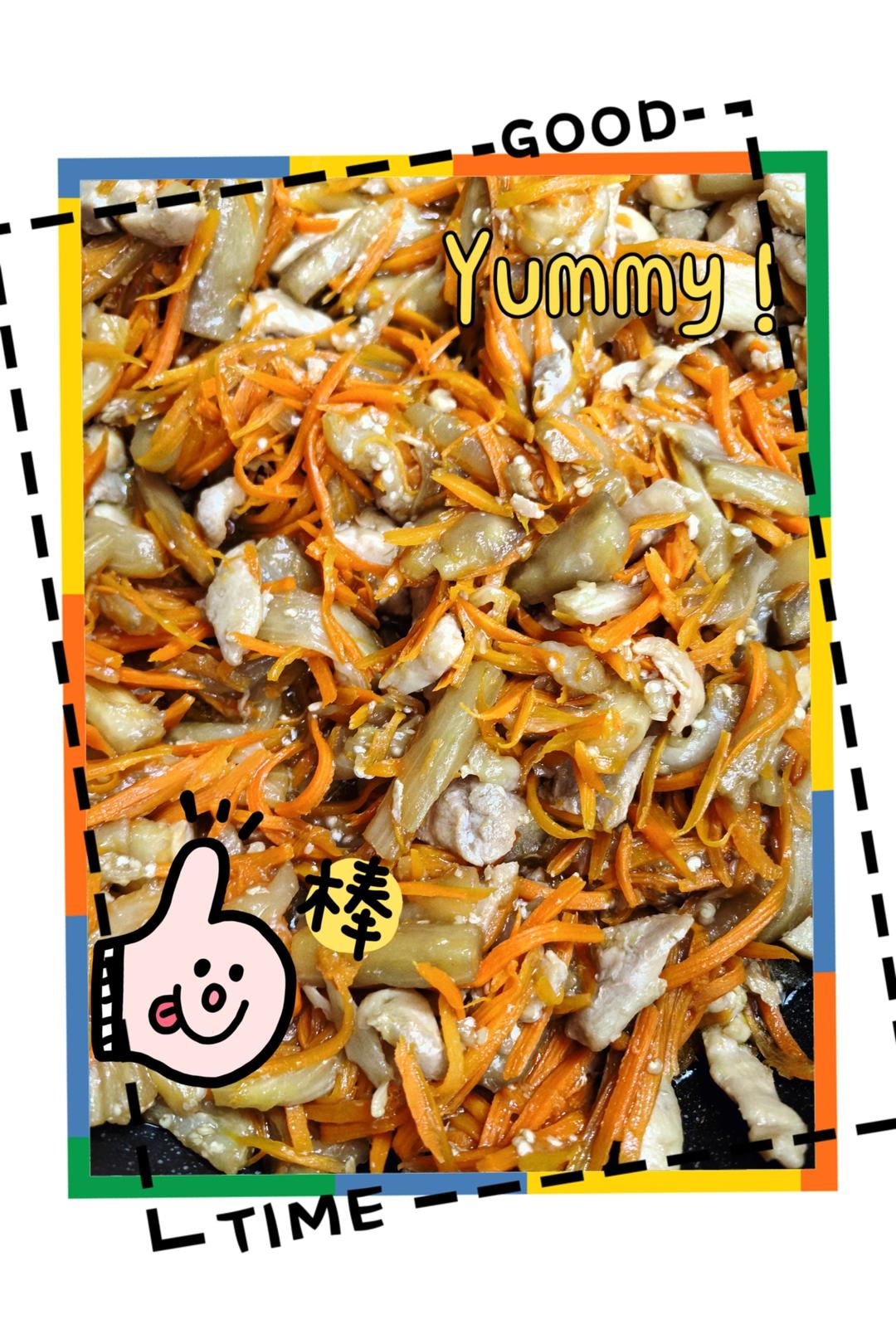 “茄子萝卜丝炒鸡腿肉”——米饭杀手!😋😋😋