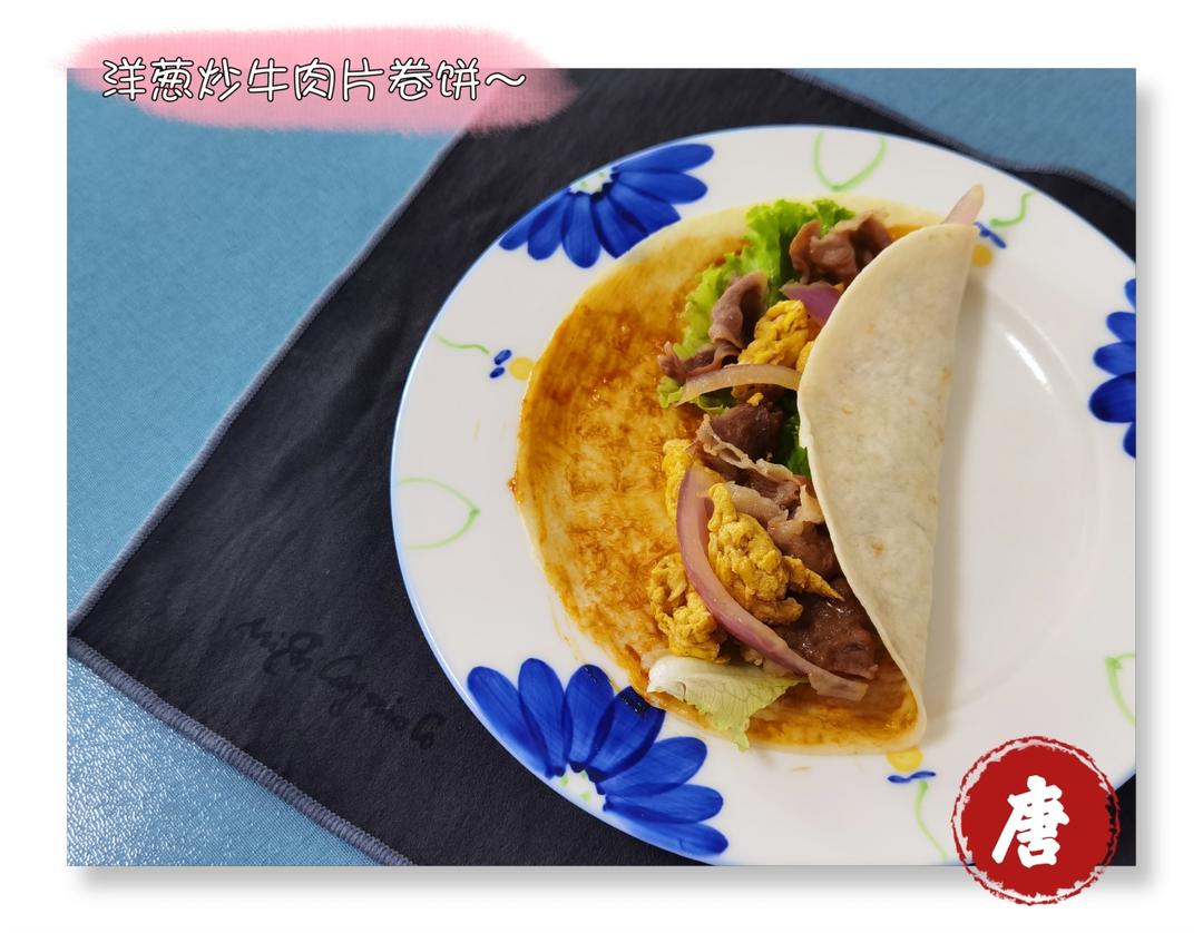 炒个洋葱牛肉,卷饼味道也不错。