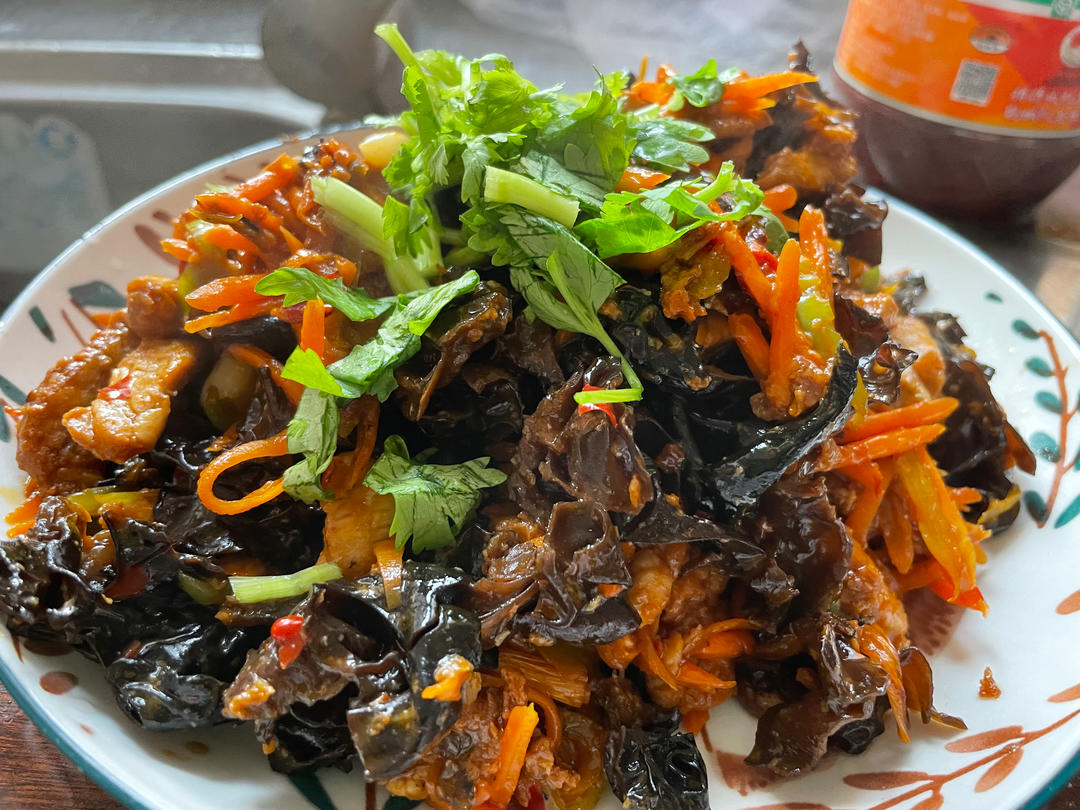 鱼香肉条 哈哈 味道很好 下次把肉切细再来一次!