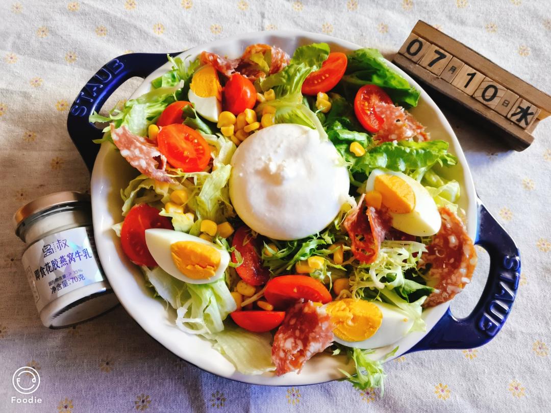 20240710早餐打卡1622:奶酪煮蛋蔬菜沙拉,花胶燕窝牛乳。早餐中国;