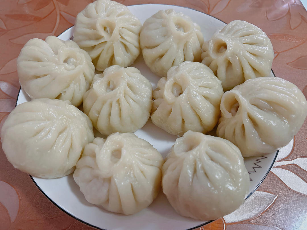 烫面包子 猪肉包菜馅 鲜甜的味道 可惜面皮厚了点 下次改进