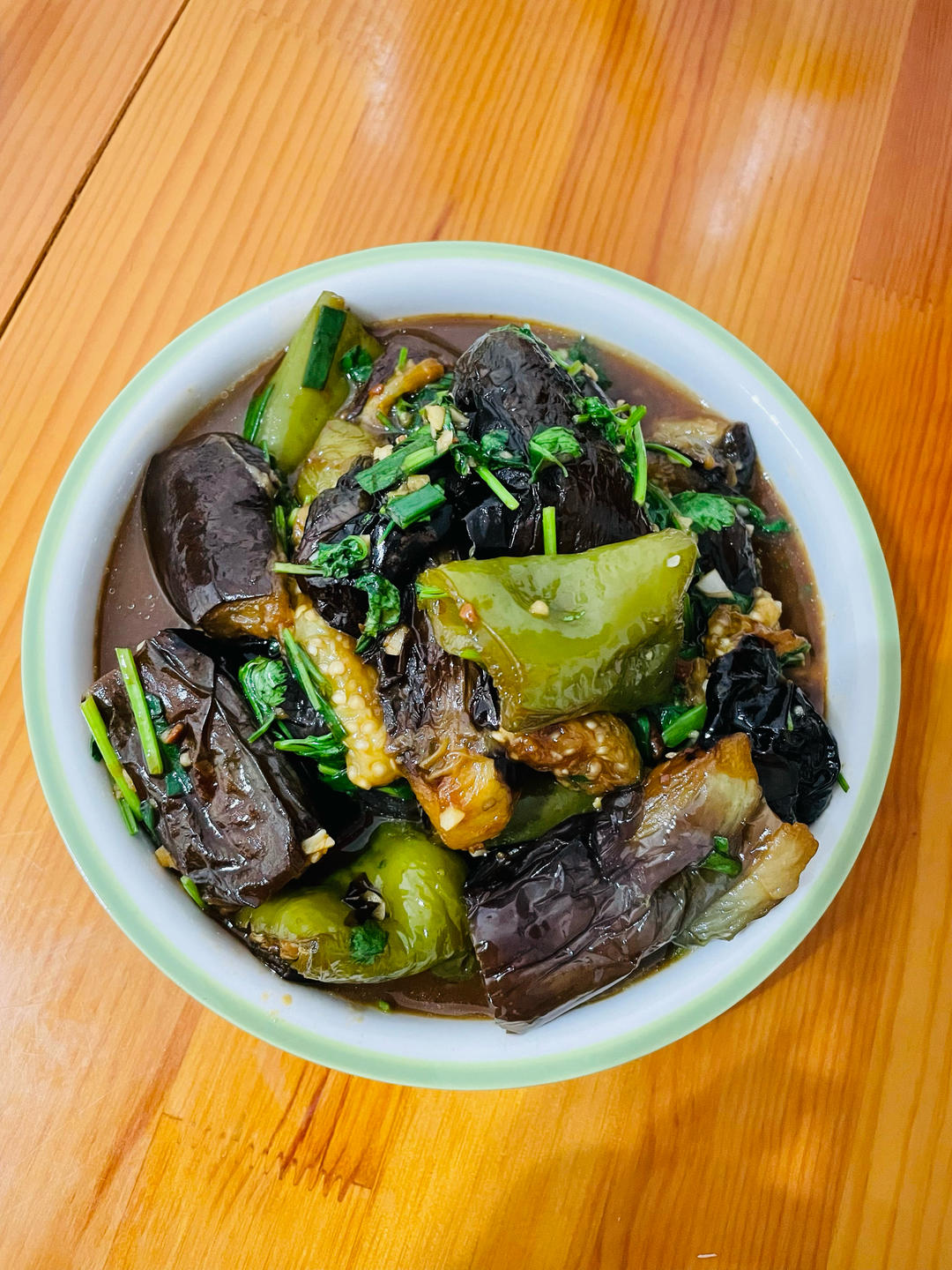 🥣酱烧茄子🍆、泡椒炒牛肉土豆丝、盐水毛豆,早上煮的玉米🌽南瓜🎃晚上继续吃~~