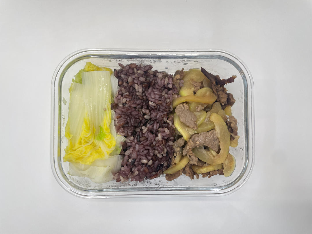 青瓜炒牛肉+青菜