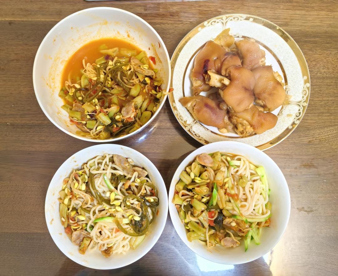 妈妈怕猪蹄汤油腻,让我查红烧猪蹄做法,用高压锅直接炒制后蓄水炖,配上面条特别好吃。