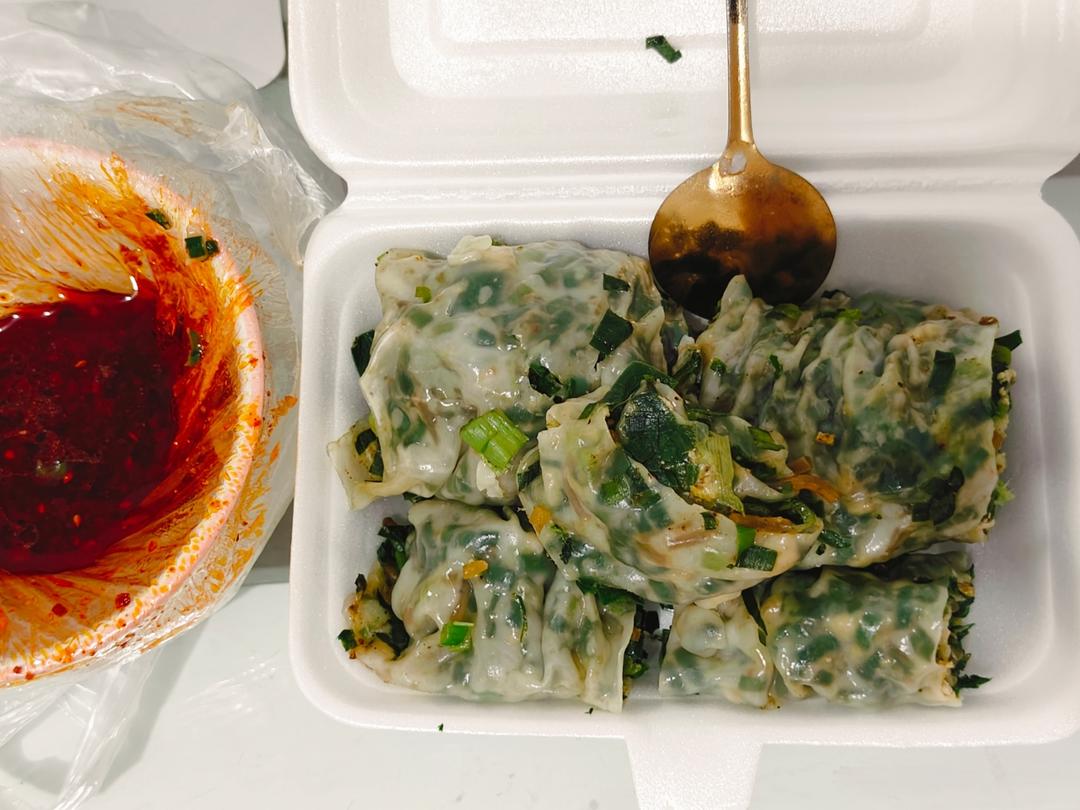 糯叽叽的烤苕皮,搭配酸豆角和香菜碎,完美~