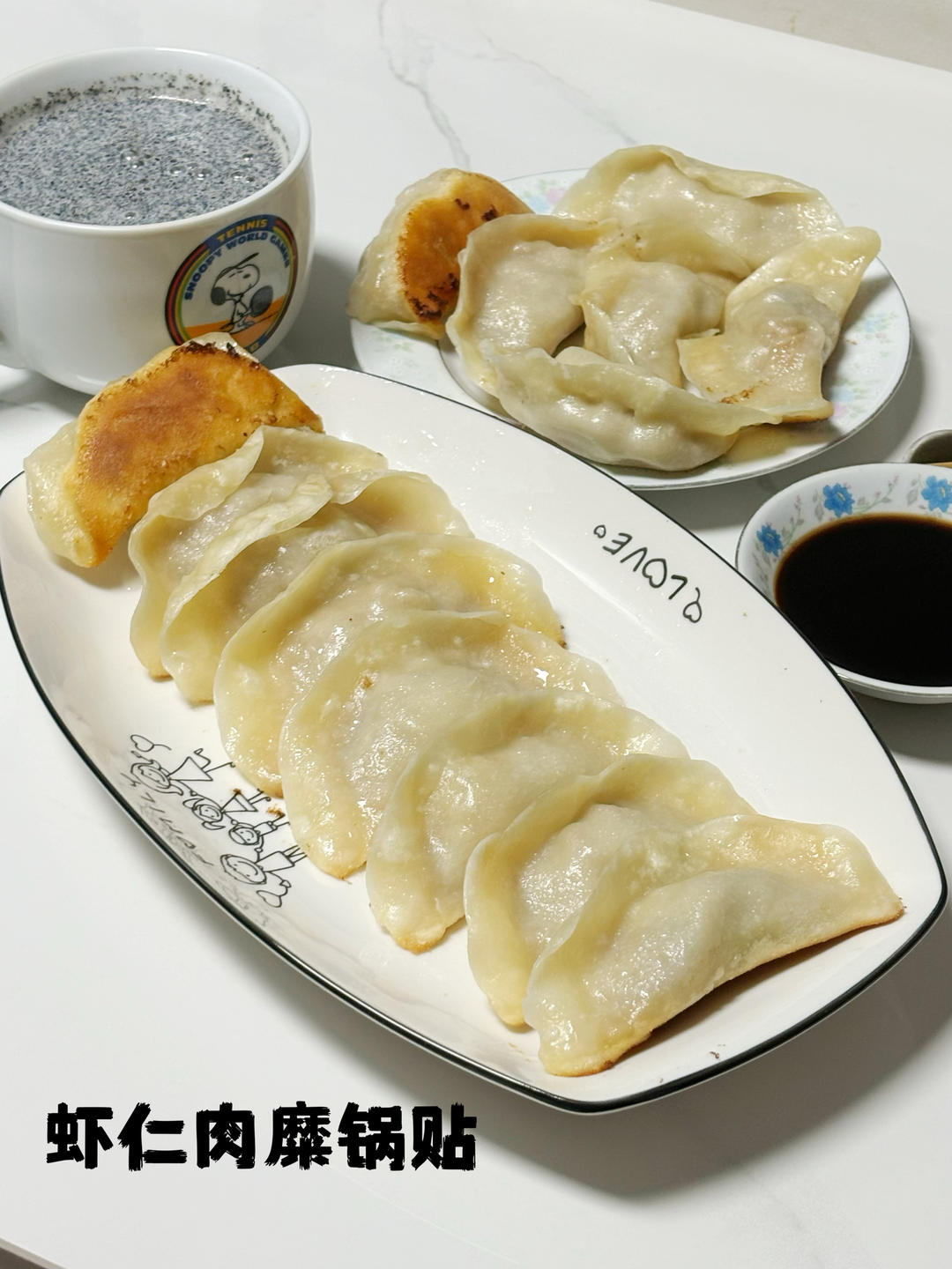 早餐:虾仁肉糜锅贴