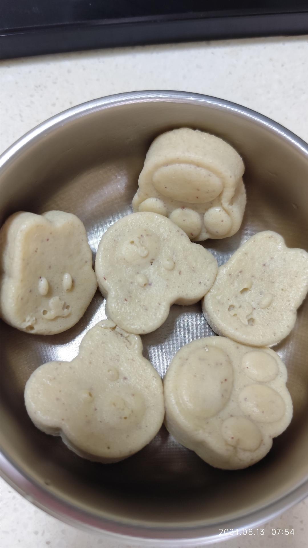 红枣山药蒸糕。剩余一点山药都加进去了27克,打打停停接近3分钟,刚好6个,水开之后放入蒸...