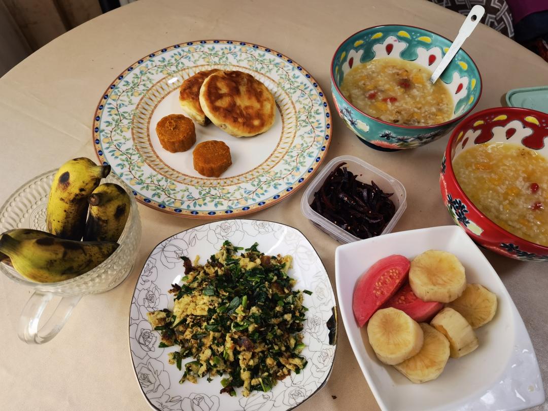 ㋇㏲放假第4️⃣3️⃣天 鸡蛋饼加咸鸭蛋配黑米粥并小米粥