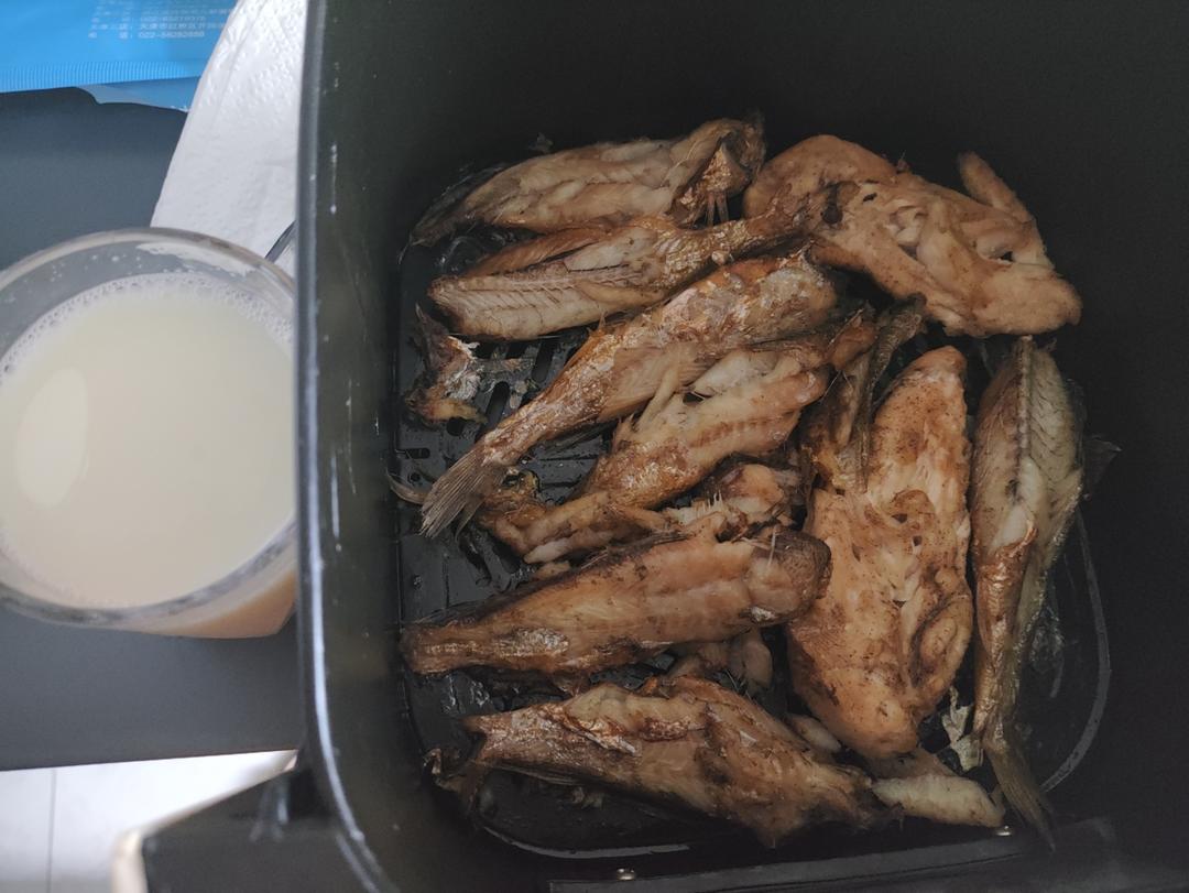 烤小黄鱼,自己去内脏后腌制,空气炸锅,翻面就碎,味道还行。水槽里的鱼腥味难顶