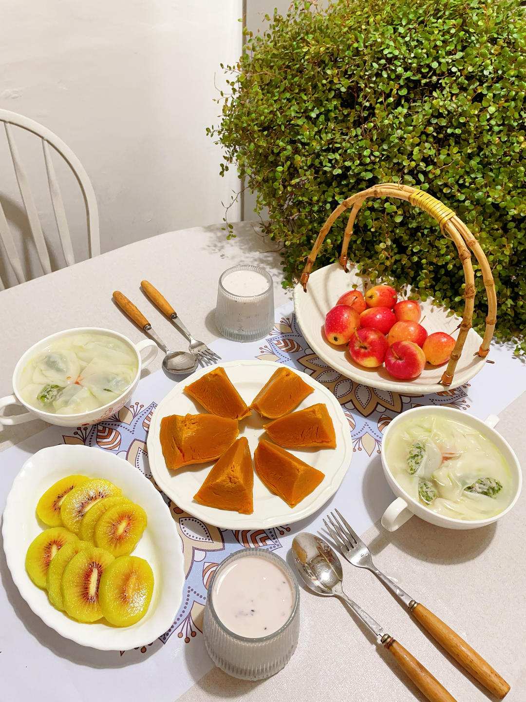 周一 地藏菩萨诞辰,娃们也都开学了。早餐馄饨,蒸老南瓜。
