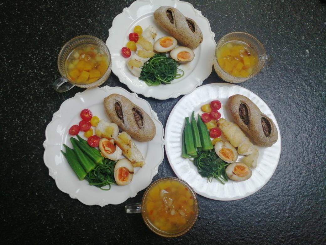 🍽️肉松面包🥚鸡蛋🍋柠檬茶🥄抹茶酸奶