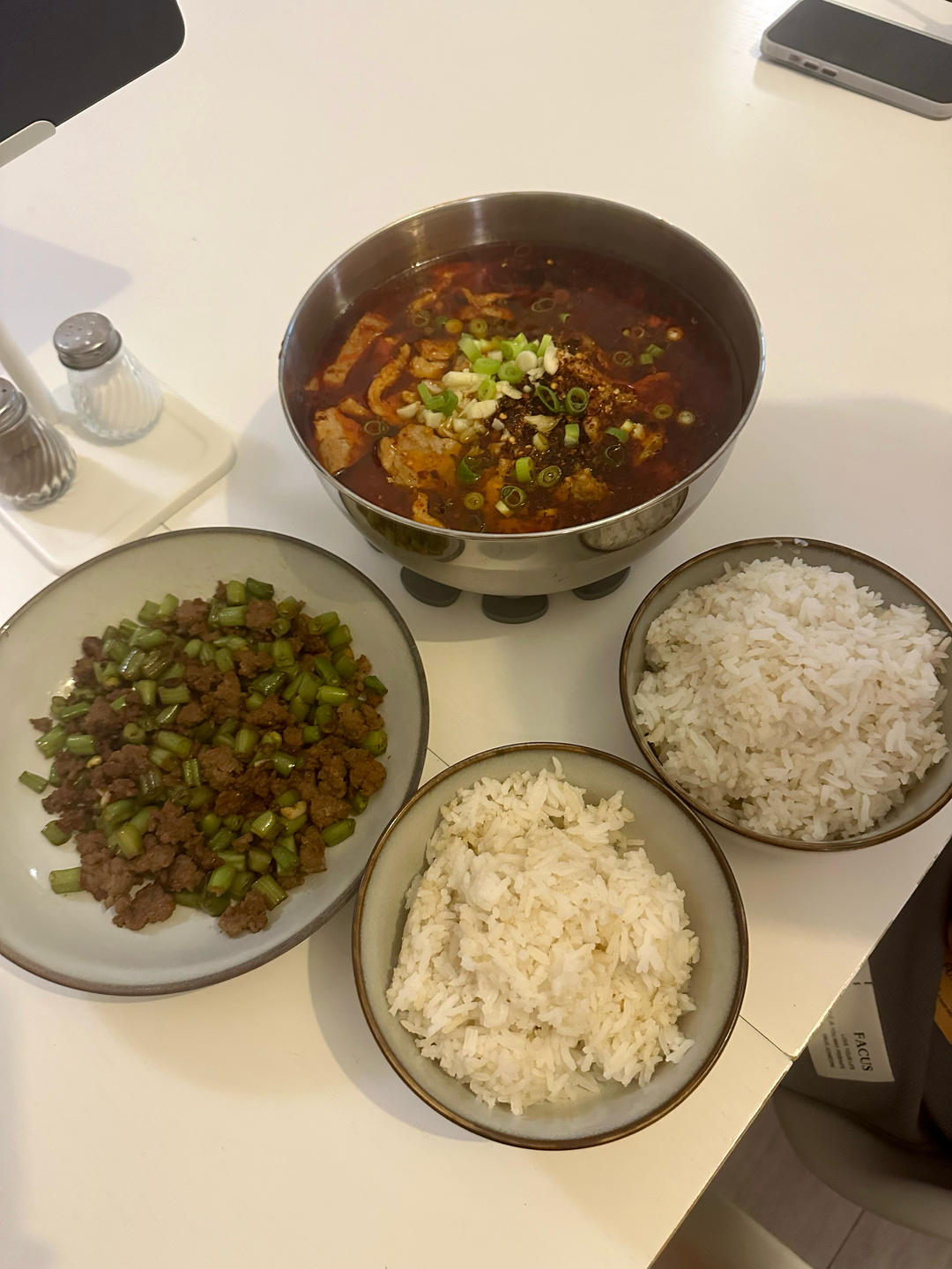 吃酸菜鱼,因为初次尝试高压锅煮米饭,把他的白米饭煮...