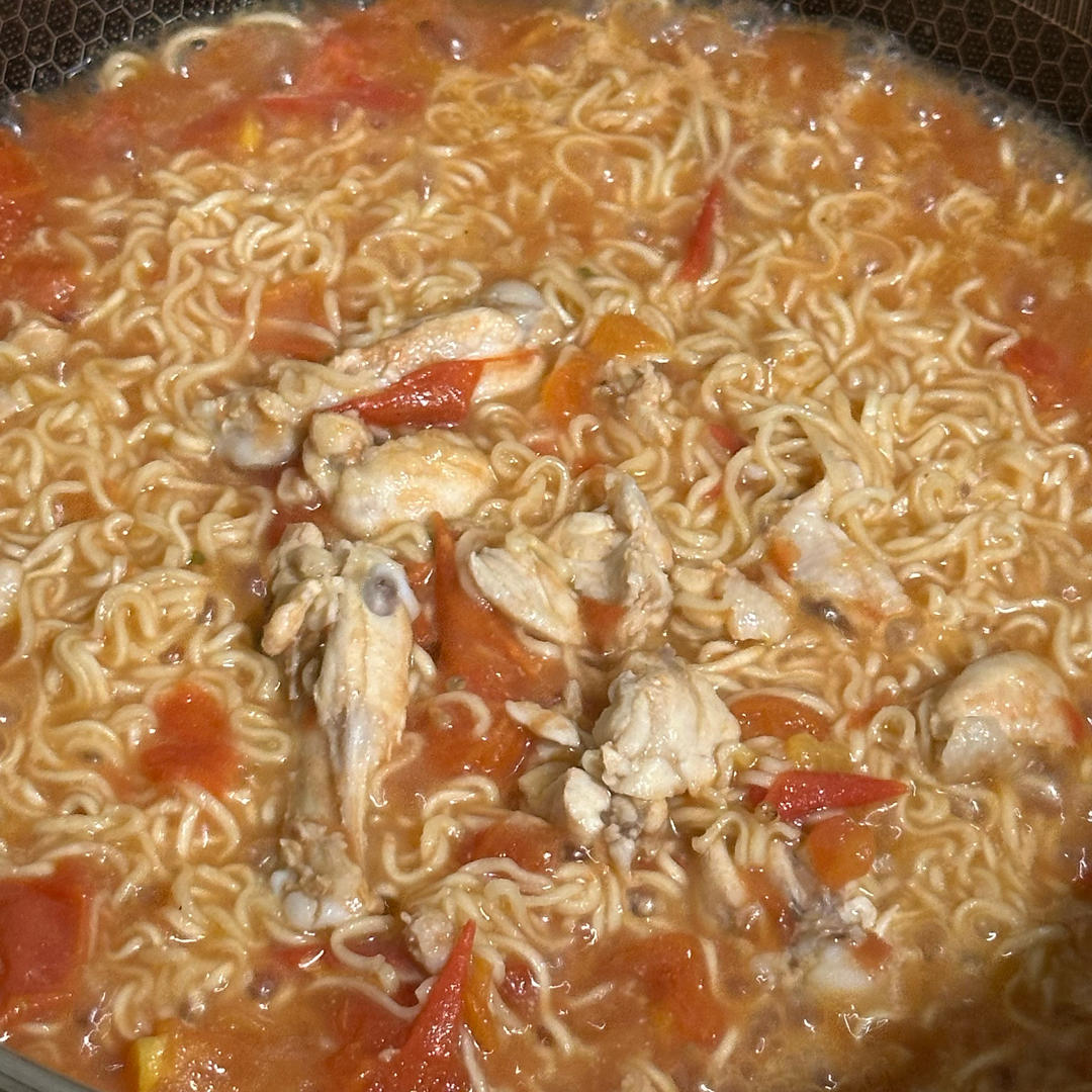 自己做的 番茄炖鸡腿 🍗!!再加上方便面🍜