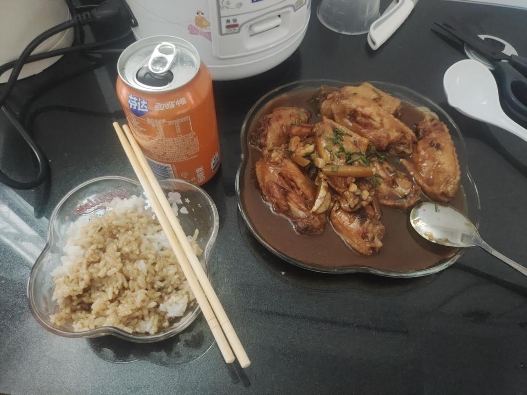 陈先生做的大餐,板栗烧排骨、口蘑大虾似乎颜色都太深了,而且辣椒多了点儿,但确实很好吃!可惜...